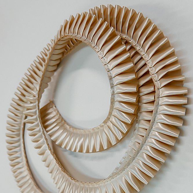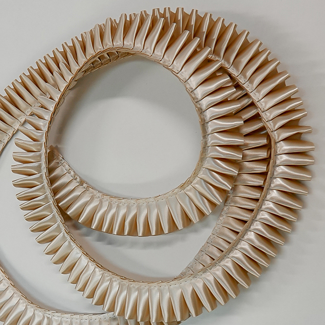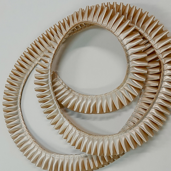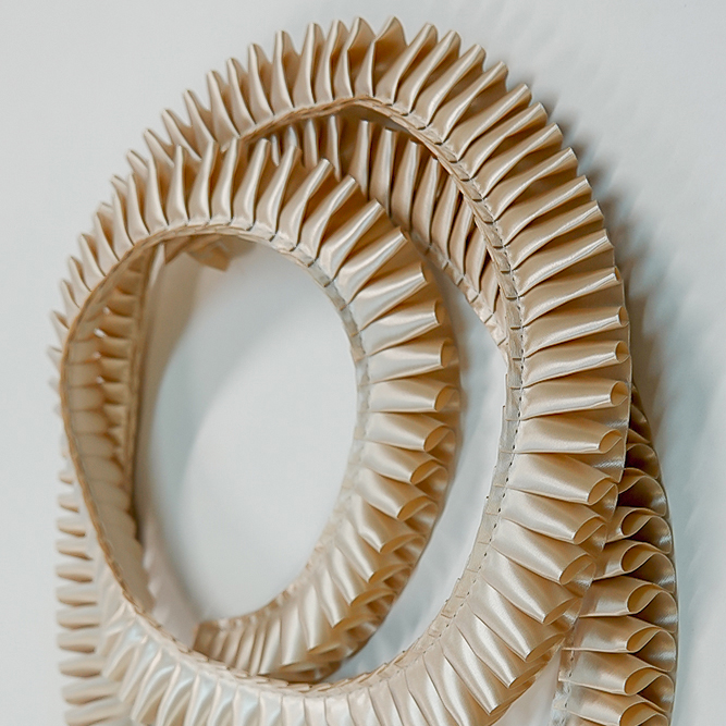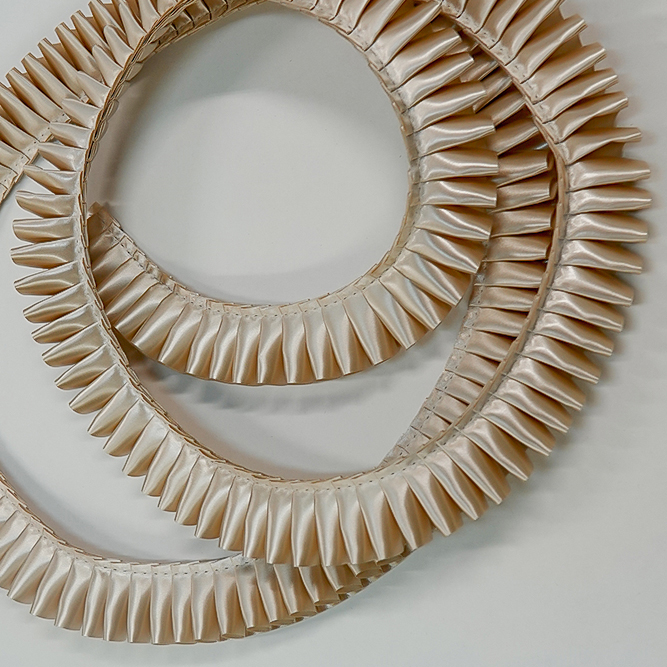 Плиссированная сатиновая лента шириной 25 мм. Форма складки "Елизаветинская". Для производства наградных розеток и других наград. Продажа от 5 метров. Цвет ШАМПАНЬ. Код цвета 55 Расход плиссированной ленты на 1 розетку примерно 22 см.