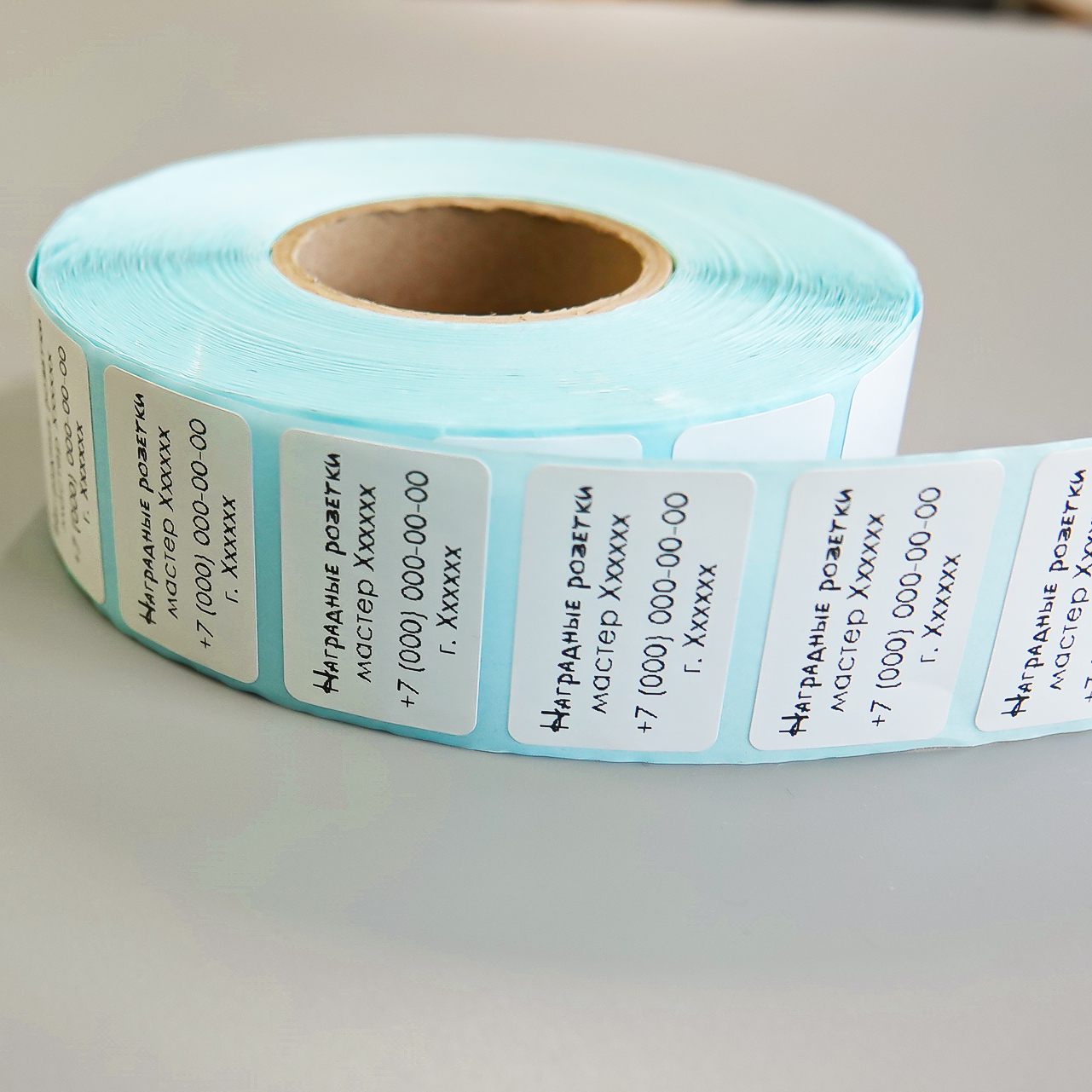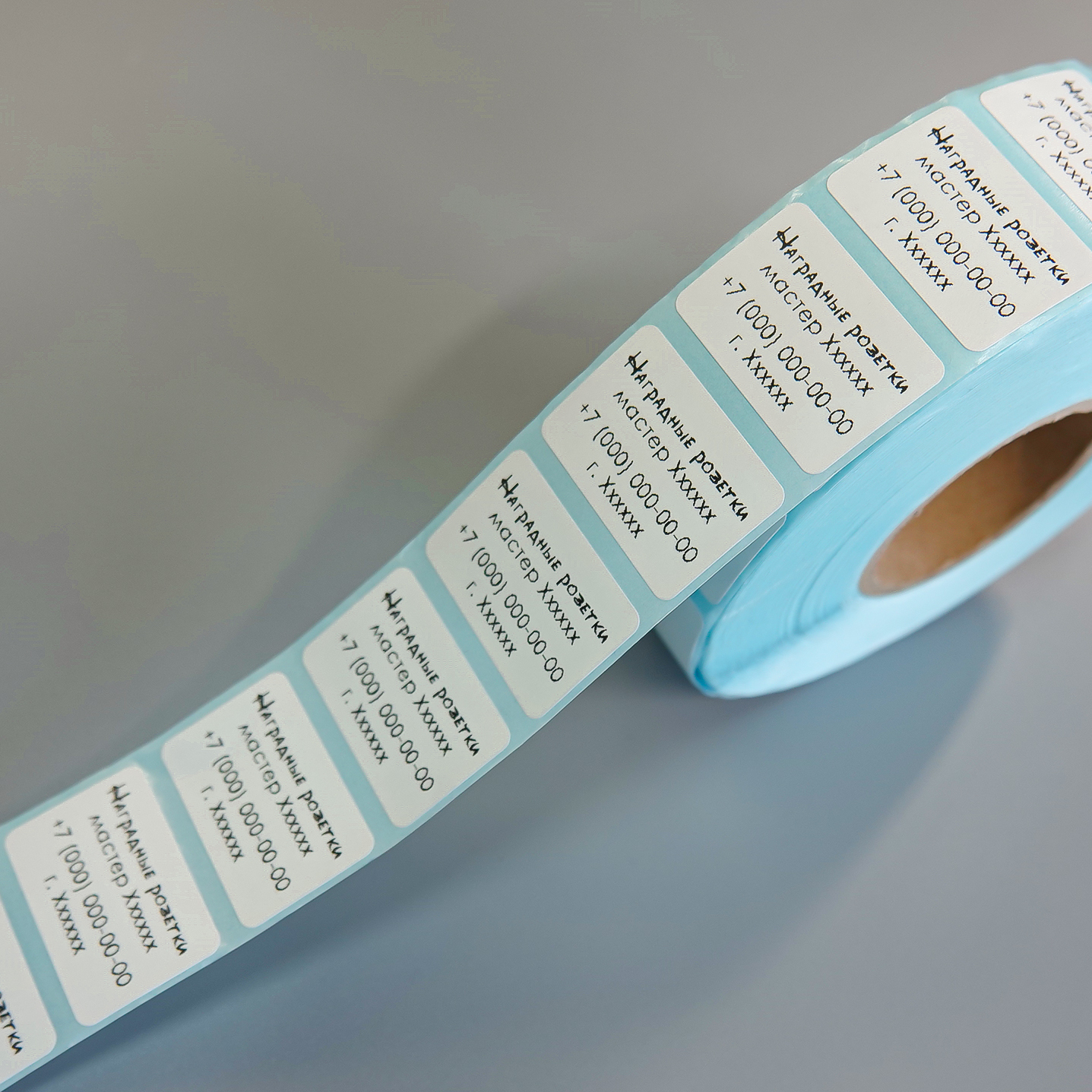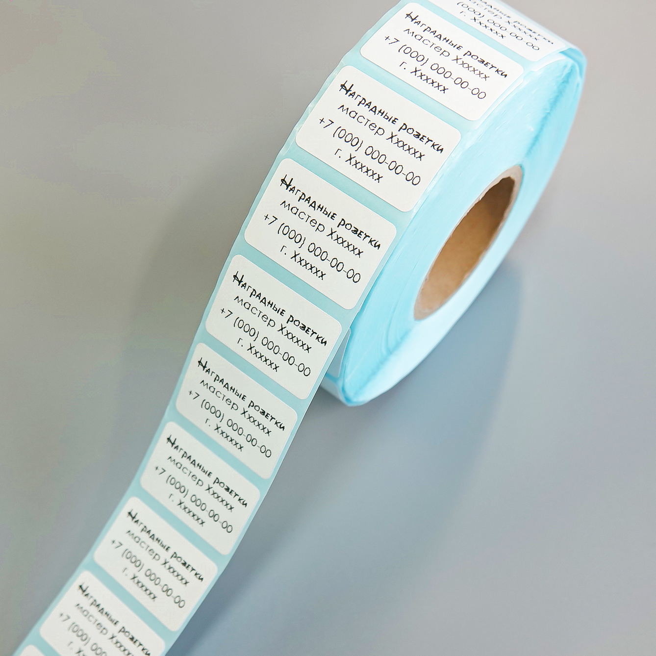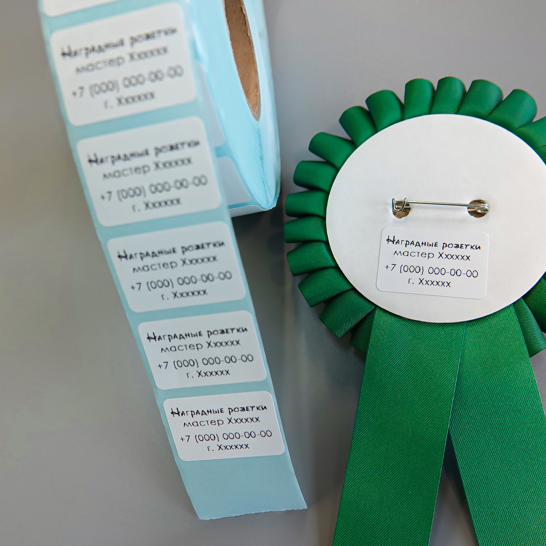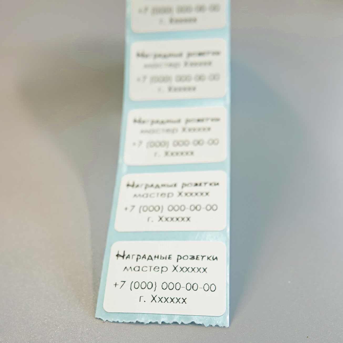 Наклейки визитки для наградных розеток. Размер 30х20 мм. Данные согласуем перед печатью. Комплект 200 шт.