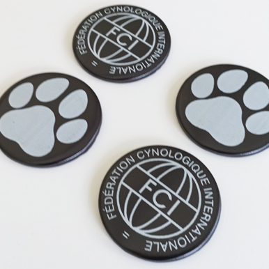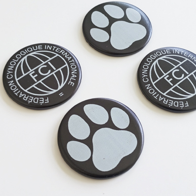 Центр вставка, закатной значок 56 мм. Вместо стандартного лавсана используется сатин, возможно в тон плиссировки. Нанесение термопечать: белый цвет. Для удобства вклеивания центра в розетку, его обратная сторона имеет плоскую пластиковую поверхность и подготовлена под клей. Нанесение макет заказчика. Для подготовки макета используйте шаблон центр вставки.
